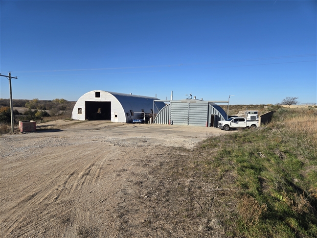 APPROXIMATELY 20 ACRES WITH 2 CURVED QUONSET BUILDINGS, NORTH BUILDING 45 X 80, INSULATED, WATER, OFFICE AREA, CONCRETE FLOOR. SOUTH BULDING 40 X 100, DIRT FLOOR, OVERHEAD DOOR, NEEDS WINDOWS AND WEST DORR/END REPLACED. PROPERTY HAS LOTS OF CEMENT DRIVE, A LARGE COMMERCIAL WELL, A DOMESTIC WELL, SINGLE & 3 PHASE ELECTRICITY, A GRAVEL PIT POND, AND A WILDLIFE AREA. NORTH BILDING, RED SHED, IS NOT INCLUDED AND THERE WILL BE EASEMENTS FOR WATER AND DRIVEWAY BETWEEN PROPERTIES, FULL POSSESSION UPON CLOSING.